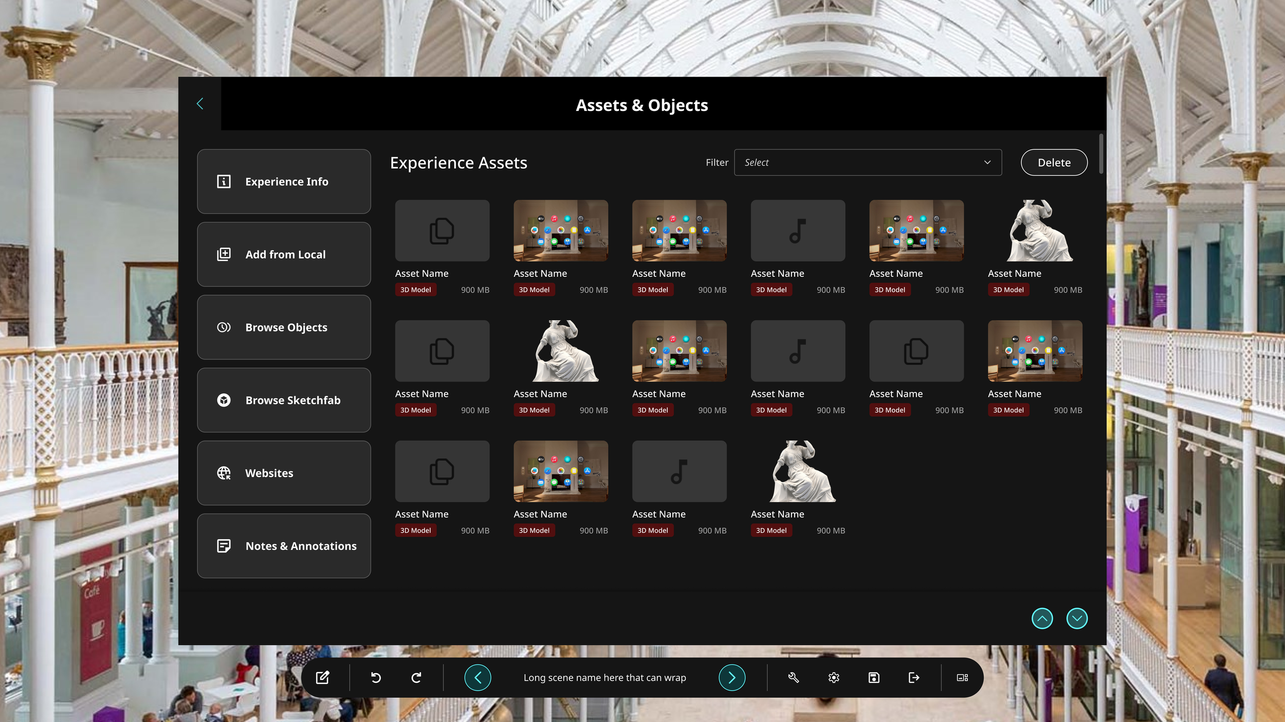 Using cutting-edge photogrammetry equipment to scan museum objects up to 1 tonne in weight - University of Glasgow aims to create best practice object capture and 3D model optimisation processes to enable museums worldwide to capture and share - sensitively and securely - incredible objects in VR or AR. Edify provides the immersive platform and 3D object and environment import pipeline for creating metaverse experiences centered around museum objects and spaces.